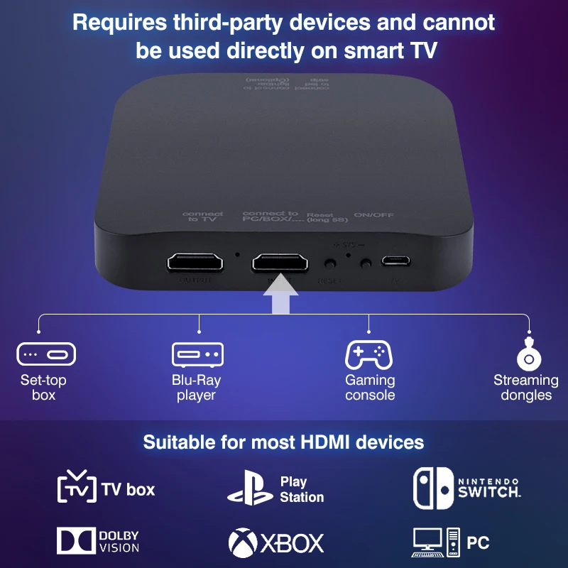 Our Ambient TV Led Backlight is easy to operate, plug and play, and does not require WiFi or APP operation.Smart TV cannot be used alone with TV light strips,It requires an HDMI-Compatible 2.0 input source device to be used with this light strip, Such as For TV box, game console, laptop, PS4/PS5, etc. (Note: it does not support HDMI-Compatible 2.1).If you are not sure if your input source device is compatible with our light strip device, please contact our online customer service before purchasing, and we will reply to you within 24 hours.
